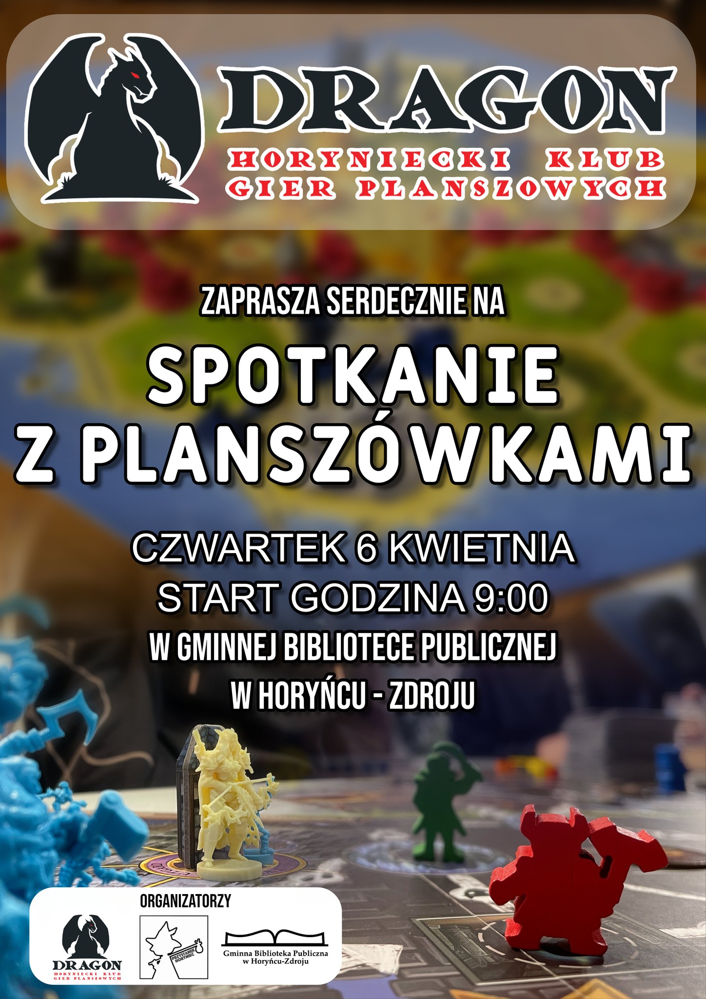 Spotkania Horynieckiego Klubu Gier Planszowych odbywają się w Gminnej Bibliotece Publiczne w Horyńcu-Zdroju. Zabawa przeznaczona jest dla osób powyżej 10 roku życia. Najbliższe wspólne granie w gry planszowe odbędzie się w czwartek o godz. 9:00. Na Facebooku organizatorzy będą informować o kolejnych terminach spotkań.