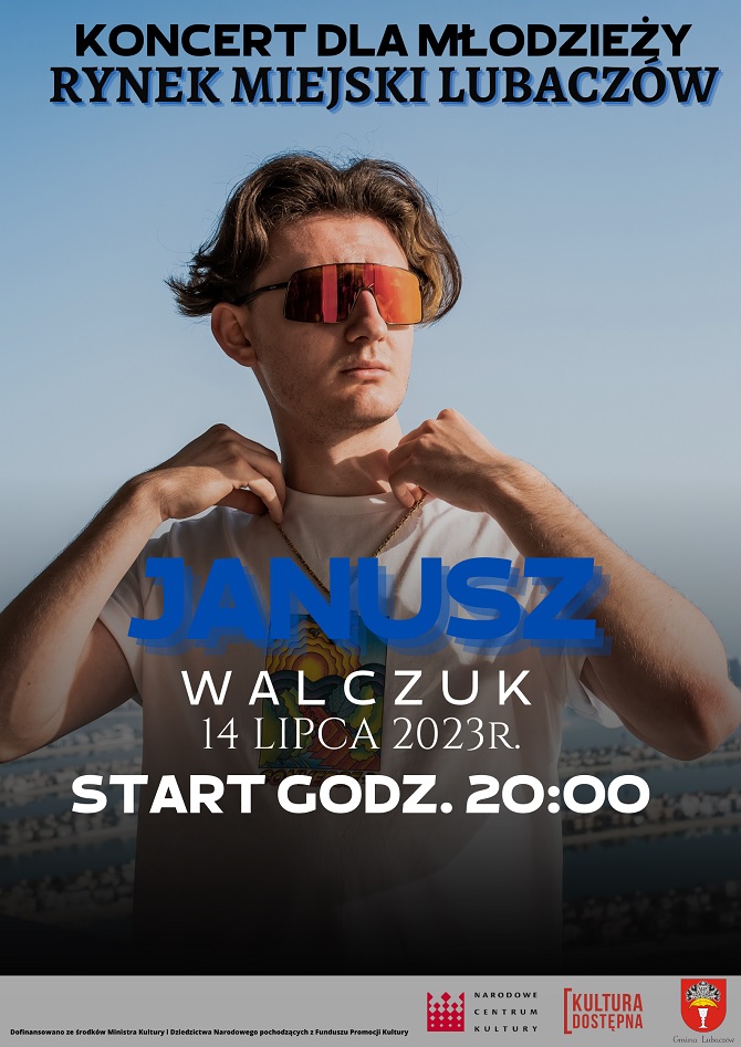W najbliższy piątek (14.07) na lubaczowskim Rynku odbędzie się koncert rapera Janusza Walczuka. Początek o godzinie 20:00.