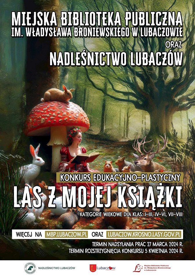 Nadleśnictwo Lubaczów wraz z Miejską Biblioteką Publiczną w Lubaczowie zaprasza uczniów szkół podstawowych z terenu powiatu lubaczowskiego do wzięcia udziału w konkursie edukacyjno-plastycznym “Las z mojej książki”. To doskonała okazja, aby zaprezentować swoje umiejętności plastyczne i jednocześnie zgłębiać tajniki literatury!