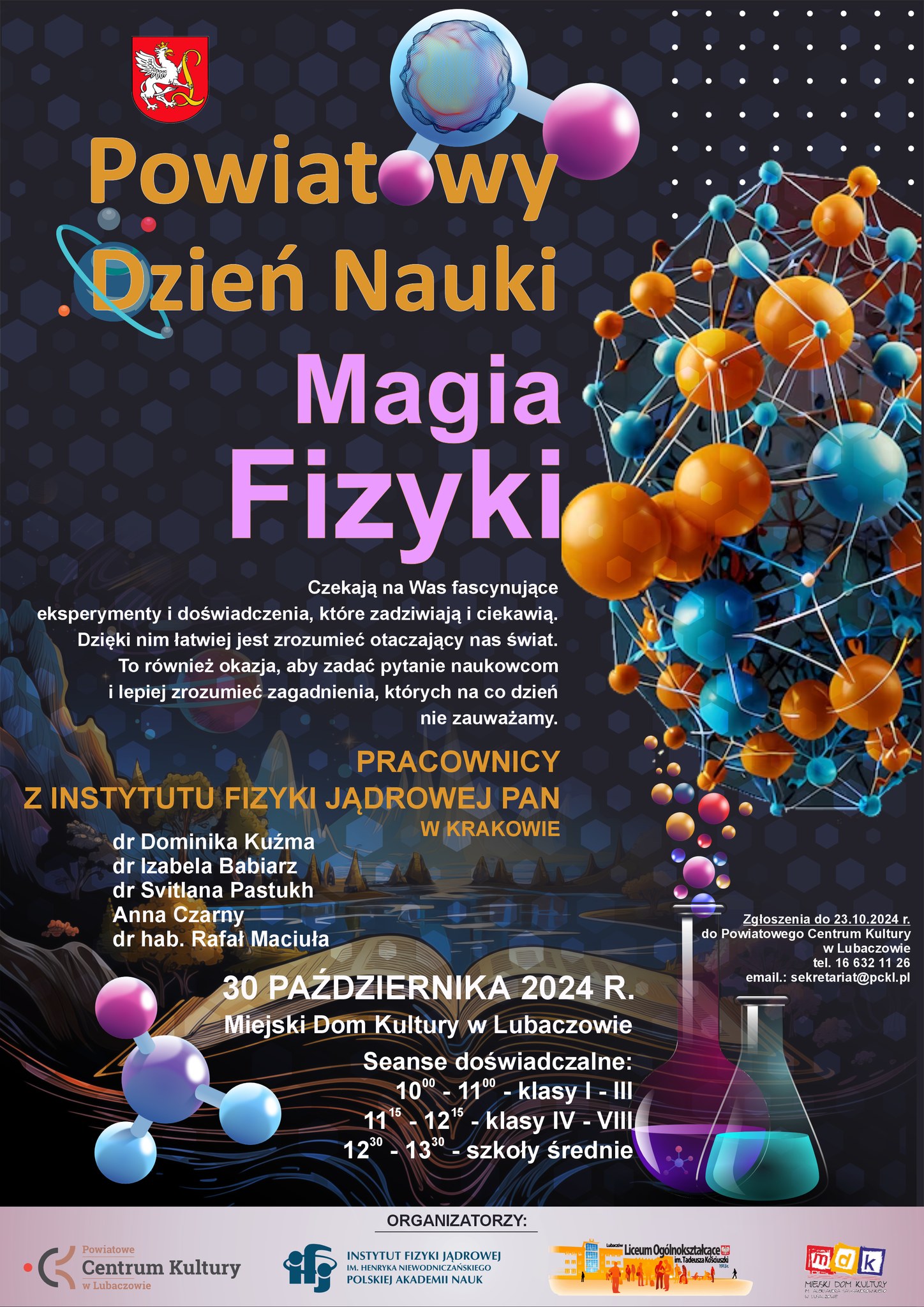 30 października 2024 r. w Miejskim Domu Kultury w Lubaczowie odbędzie się Powiatowy Dzień Nauki pod hasłem „Magia Fizyki”. Wydarzenie dedykowane jest uczniom szkół podstawowych i średnich.