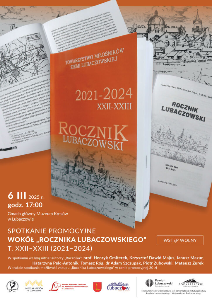 Redakcja „Rocznika Lubaczowskiego”, Towarzystwo Miłośników Ziemi Lubaczowskiej oraz Muzeum Kresów w Lubaczowie zapraszają na wyjątkowe spotkanie poświęcone najnowszemu tomowi tego periodyku. Wydarzenie odbędzie się 6 marca 2025 roku o godzinie 17:00 w gmachu głównym Muzeum Kresów.