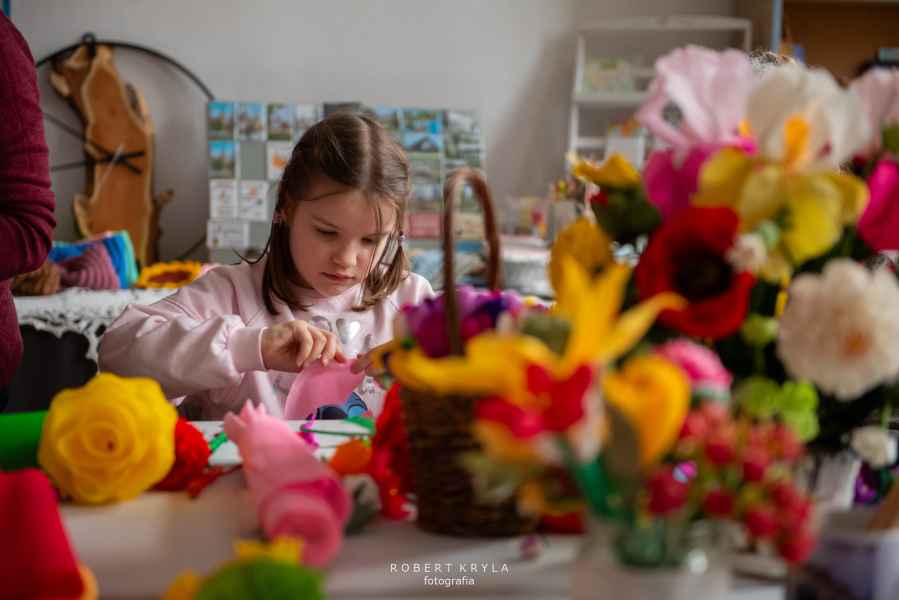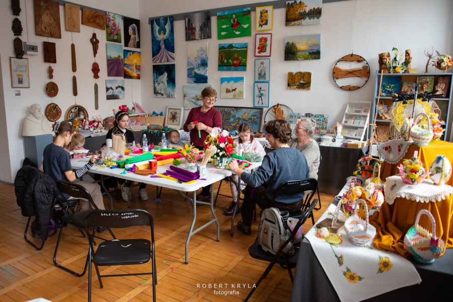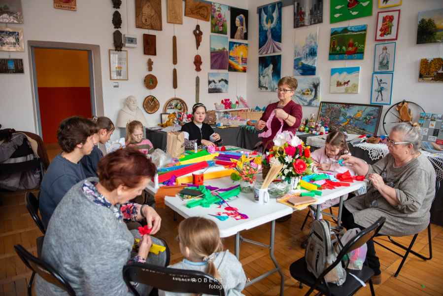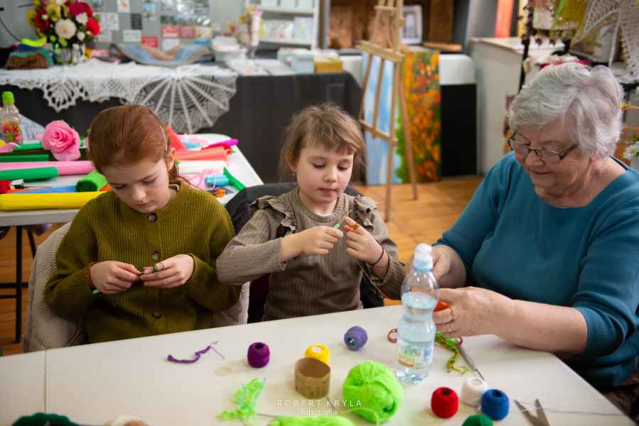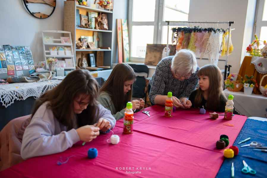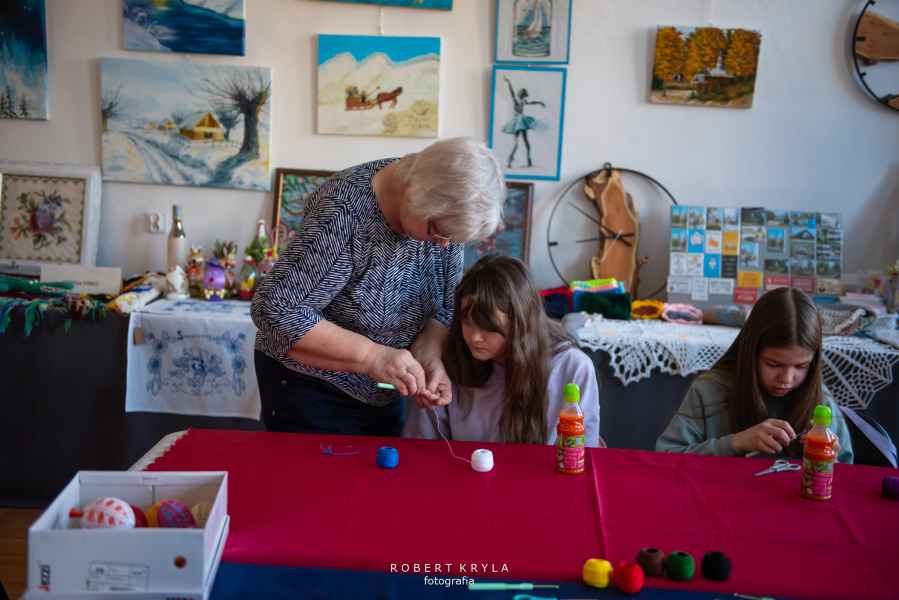Nie zabrakło również odniesień do lokalnych tradycji. Uczestnicy mieli szansę tworzyć kwiaty z bibuły oraz robić pisanki na szydełku, co przybliżało ich do dawnych zwyczajów kultywowanych w wielu rodzinach. Warsztaty miały wymiar edukacyjny, ukazując bogactwo sztuki ludowej oraz tradycyjnych technik rękodzielniczych.