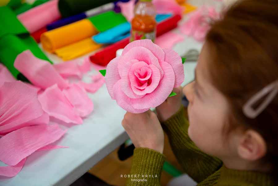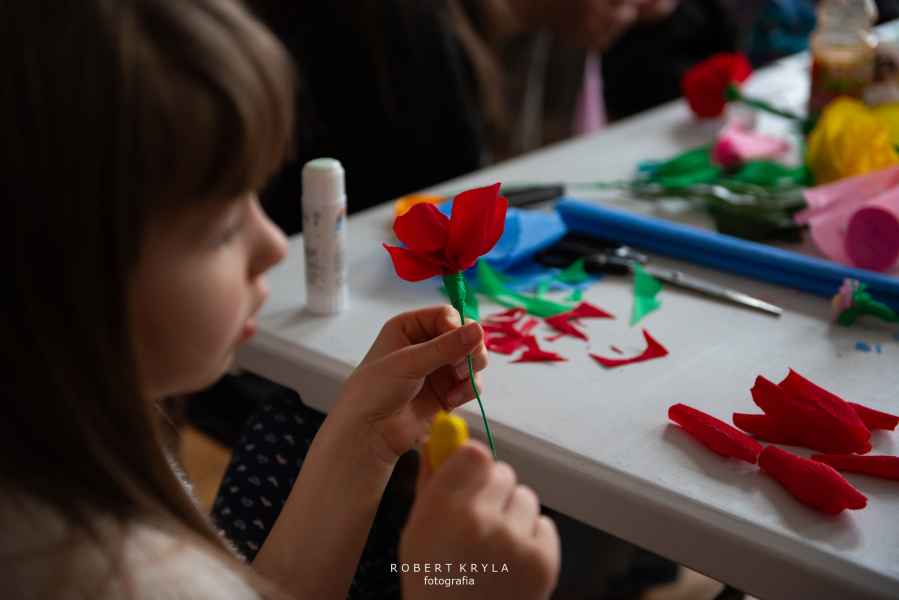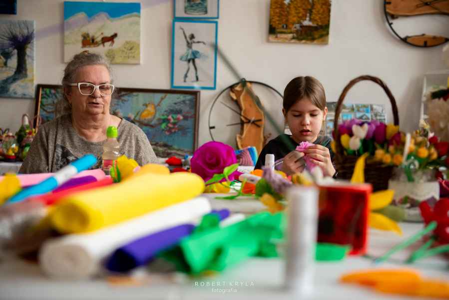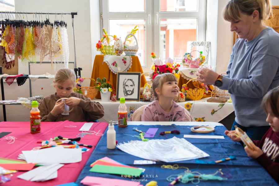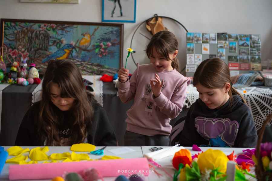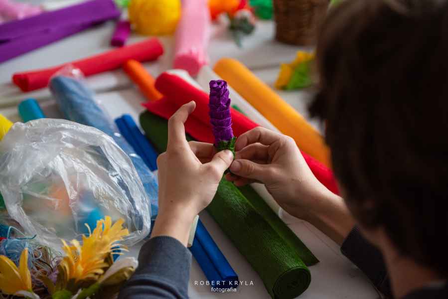 Nie zabrakło również odniesień do lokalnych tradycji. Uczestnicy mieli szansę tworzyć kwiaty z bibuły oraz robić pisanki na szydełku, co przybliżało ich do dawnych zwyczajów kultywowanych w wielu rodzinach. Warsztaty miały wymiar edukacyjny, ukazując bogactwo sztuki ludowej oraz tradycyjnych technik rękodzielniczych.