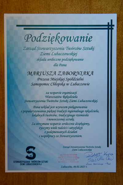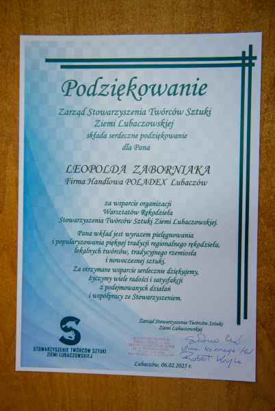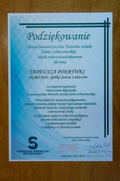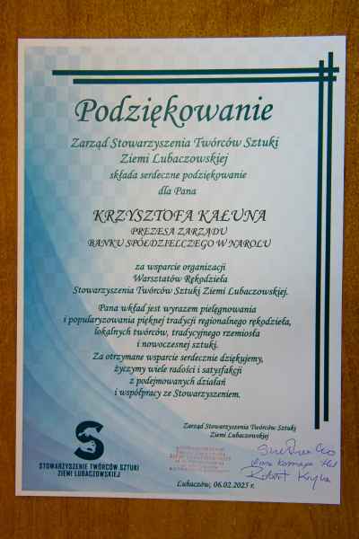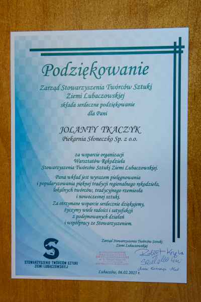 - Wasze wsparcie to nie tylko pomoc materialna, ale przede wszystkim wyraz troski o kultywowanie i popularyzowanie regionalnego rękodzieła lokalnych Twórców, tradycyjnego rzemiosła i nowoczesnej sztuki. Dzięki Wam nasza Galeria Sztuki tętni życiem, a uczestnicy warsztatów mogą rozwijać swoje talenty i pasje. DZIĘKUJEMY! - dziękuje Stowarzyszenie Twórców Sztuki Ziemi Lubaczowskiej