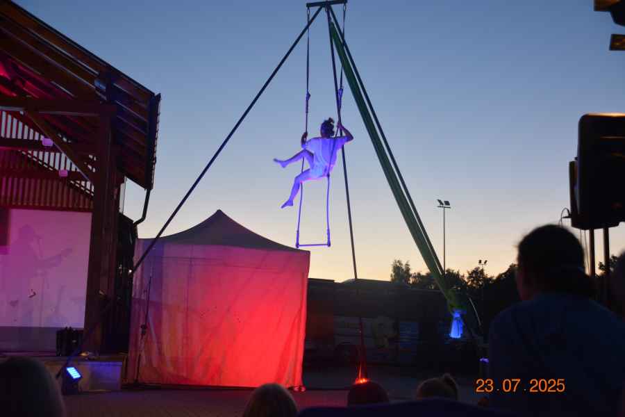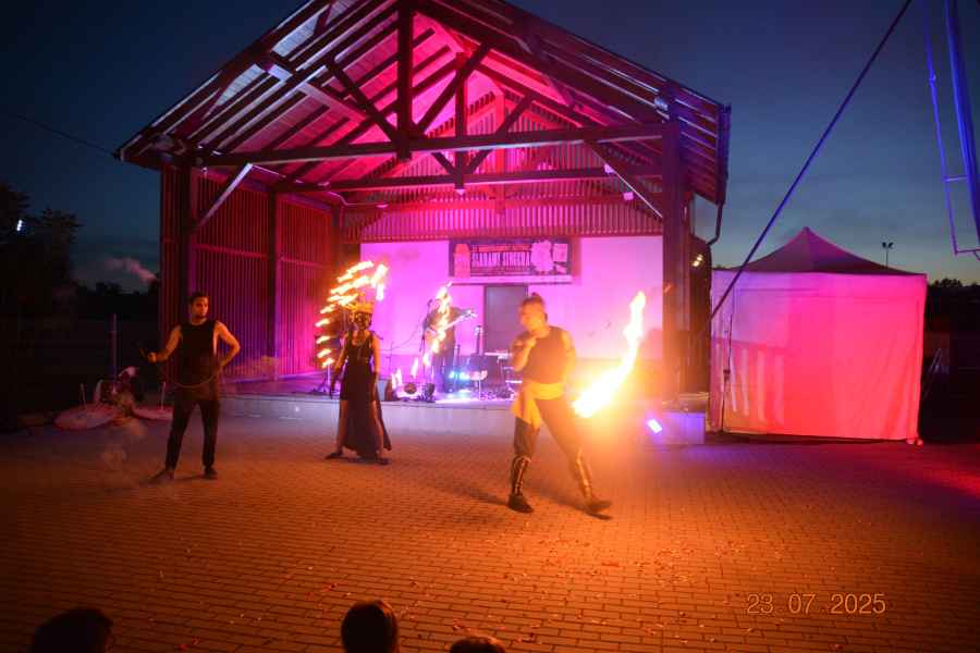 Finałem wydarzenia był spektakl plenerowy „Przyjaciele Sztukmistrza 2025”. Artyści z różnych krajów Europy – aktorzy, muzycy, tancerze, akrobaci i cyrkowcy – zaprezentowali widowisko łączące teatr, muzykę na żywo, elementy cyrkowe i pokaz ognia.