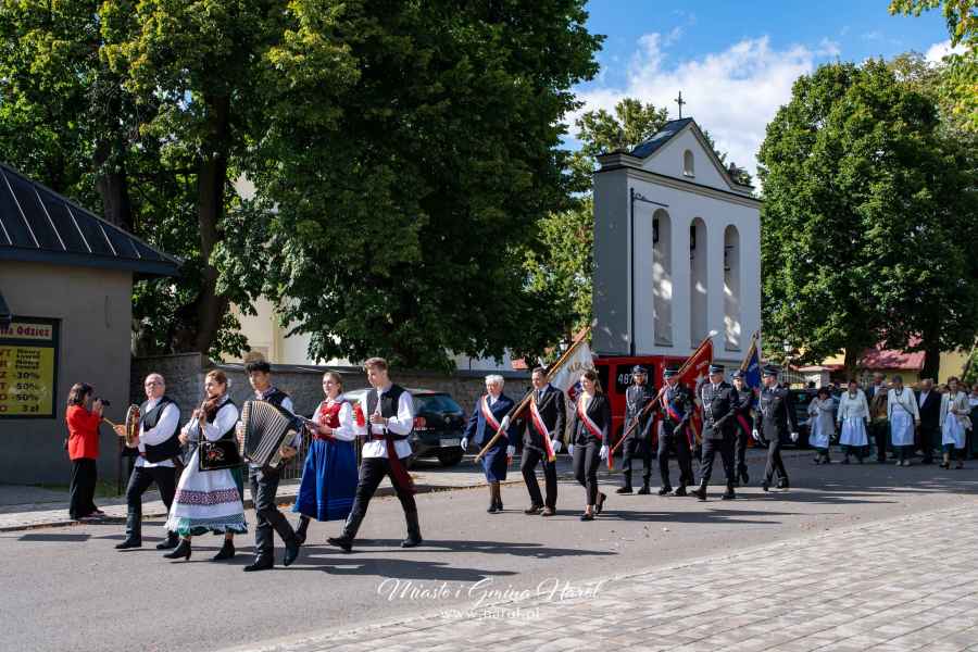 W uroczystościach wzięli udział rolnicy, mieszkańcy gminy, zaproszeni goście, poczty sztandarowe, radni, sołtysi, członkinie Kół Gospodyń oraz przedstawiciele władz samorządowych, w tym burmistrz Arkadiusz Mroczek, zastępca burmistrza Stanisław Woś, przewodniczący Rady Miejskiej Paweł Farion, sekretarz Daniel Lomber, skarbnik Małgorzata Ważna, starosta Barbara Broź, wiceprzewodniczący Rady Powiatu Rafał Kogut, radny Marek Żołądek oraz dyrektorzy szkół i jednostek organizacyjnych z terenu gminy.