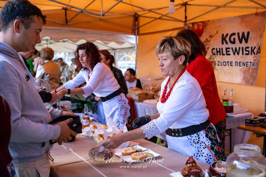 Ważnym momentem obchodów było przekazanie chleba wypieczonego z tegorocznych zbiorów przez starostów dożynkowych Agnieszkę Mączkę i Grzegorza Sabala na ręce burmistrza. Chleb został następnie podzielony i rozdany mieszkańcom przez starostów oraz sołtysa Narola Pawła Piątka.
