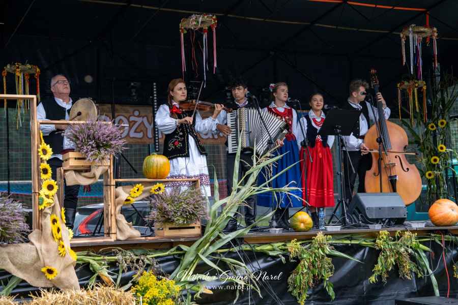 Na scenie wystąpiły Zespół Ziemi Narolskiej, Kapela Galicjanie, SKYNOVA, INESS oraz MODEZ, a wieczór zakończyła dyskoteka pod chmurką prowadzona przez DJ Slavio. Niespodzianką był występ młodego uczestnika dożynek, który zaprezentował covery polskich utworów rapowych. Na uczestników czekały potrawy i wypieki przygotowane przez Koła Gospodyń, stoiska z rękodziełem, biżuterią i przekąskami, a także atrakcje dla dzieci, w tym dmuchańce. Obecny był również punkt informacyjny Kasy Rolniczego Ubezpieczenia Społecznego.