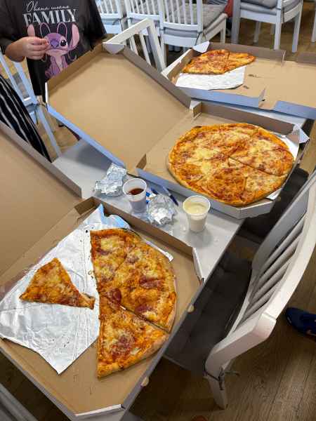 Na zakończenie, gdy emocje po rozgrywkach opadły, uczestnicy zasiedli do wspólnego grania i wspólnej pizzy, celebrując dzień pełen dobrej zabawy i integracji.