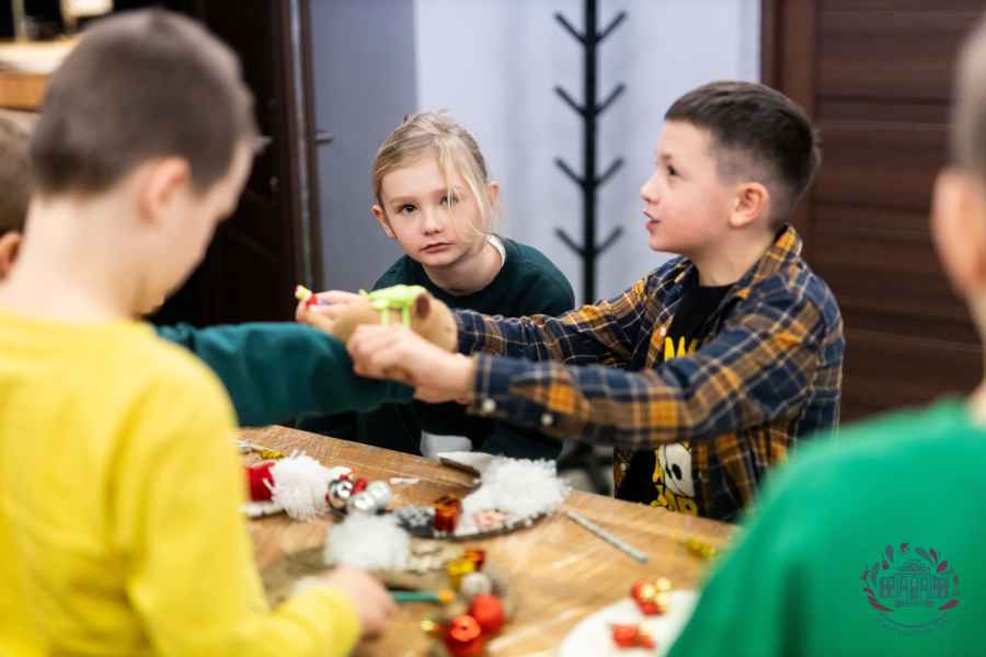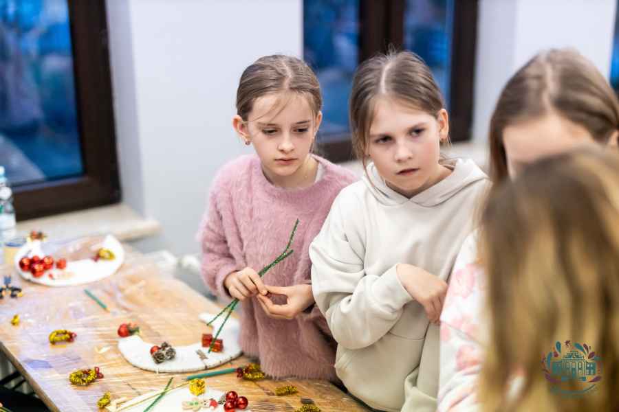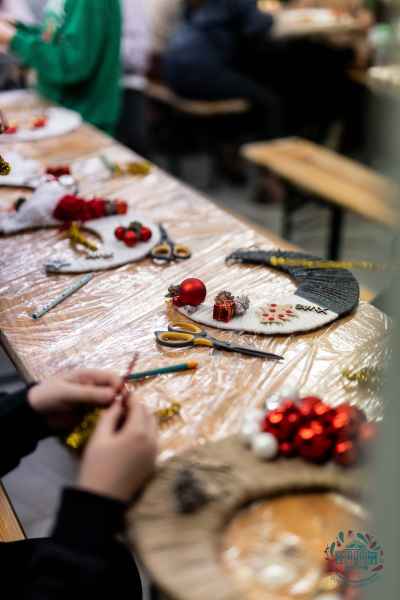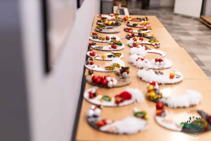 Zwieńczeniem warsztatów była kameralna wystawa prac, na której zaprezentowano wszystkie wykonane dekoracje. Każda z nich była inna i wyjątkowa, a razem stworzyły barwną i radosną zapowiedź nadchodzących świąt. Wspólną pamiątką z wydarzenia było także zdjęcie grupowe, utrwalające atmosferę radości i dobrej zabawy.