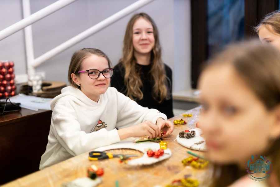 Przez dwa dni sala GOKSiT wypełniona była twórczą pracą, kolorami i świąteczną atmosferą. Dzieci, pod opieką instruktorek Ani i Edyty, z dużym zaangażowaniem przygotowywały własnoręczne dekoracje bożonarodzeniowe. Powstawały ozdoby, które łączyły tradycyjne motywy świąteczne z dziecięcą wyobraźnią i pomysłowością.