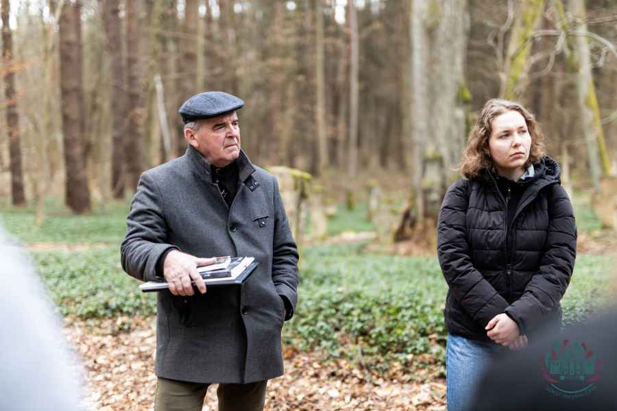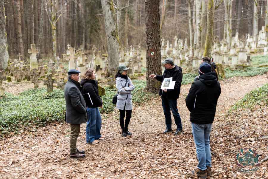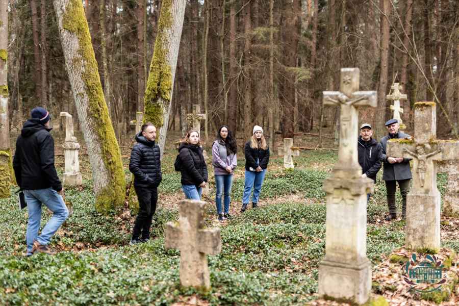 Pierwsze spotkanie odbyło się w terenie – na cmentarzu w Starym Bruśnie, który od lat uznawany jest za jedno z najważniejszych miejsc związanych z lokalnym kamieniarstwem. Uczestnicy rozpoczęli od części organizacyjnej, podczas której omówiono założenia programu „Mistrz i Uczniowie” oraz przebieg całego projektu.