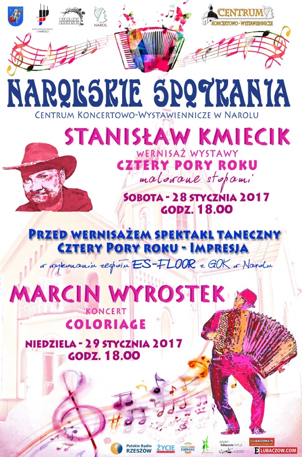 W najbliższy weekend w Centrum Koncertowo-Wystawienniczym w Narolu odbędą się „Narolskie Spotkania”. Na sobotę zaplanowano wernisaż wystawy Stanisława Kmiecika „Cztery Pory Roku”, natomiast w niedzielę wystąpi Marcin Wyrostek, zwycięzca drugiej edycji programu Mam Talent.