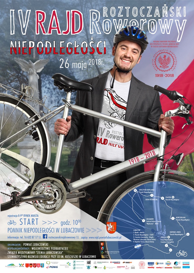 Już w najbliższą sobotę 26. maja o godz. 10:00 pod Pomnika Niepodległości w Lubaczowie wystartuje IV Roztoczański Rowerowy Rajd Niepodległości – Green Velo 2018.