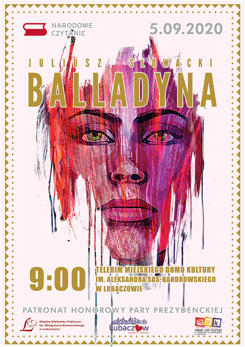 Miejska Biblioteka Publiczna im. Władysława Broniewskiego w Lubaczowie zachęca wszystkich mieszkańców naszego regionu by 5 września przyłączyć się do akcji Narodowe Czytanie w domowym zaciszu. Tych, którzy chcą wysłuchać Balladyny w lokalnym wydaniu zapraszamy na plac przed Miejskim Domem Kultury w Lubaczowie, gdzie o godz. 9:00 rozpoczniemy prezentację dramatu na telebimie.