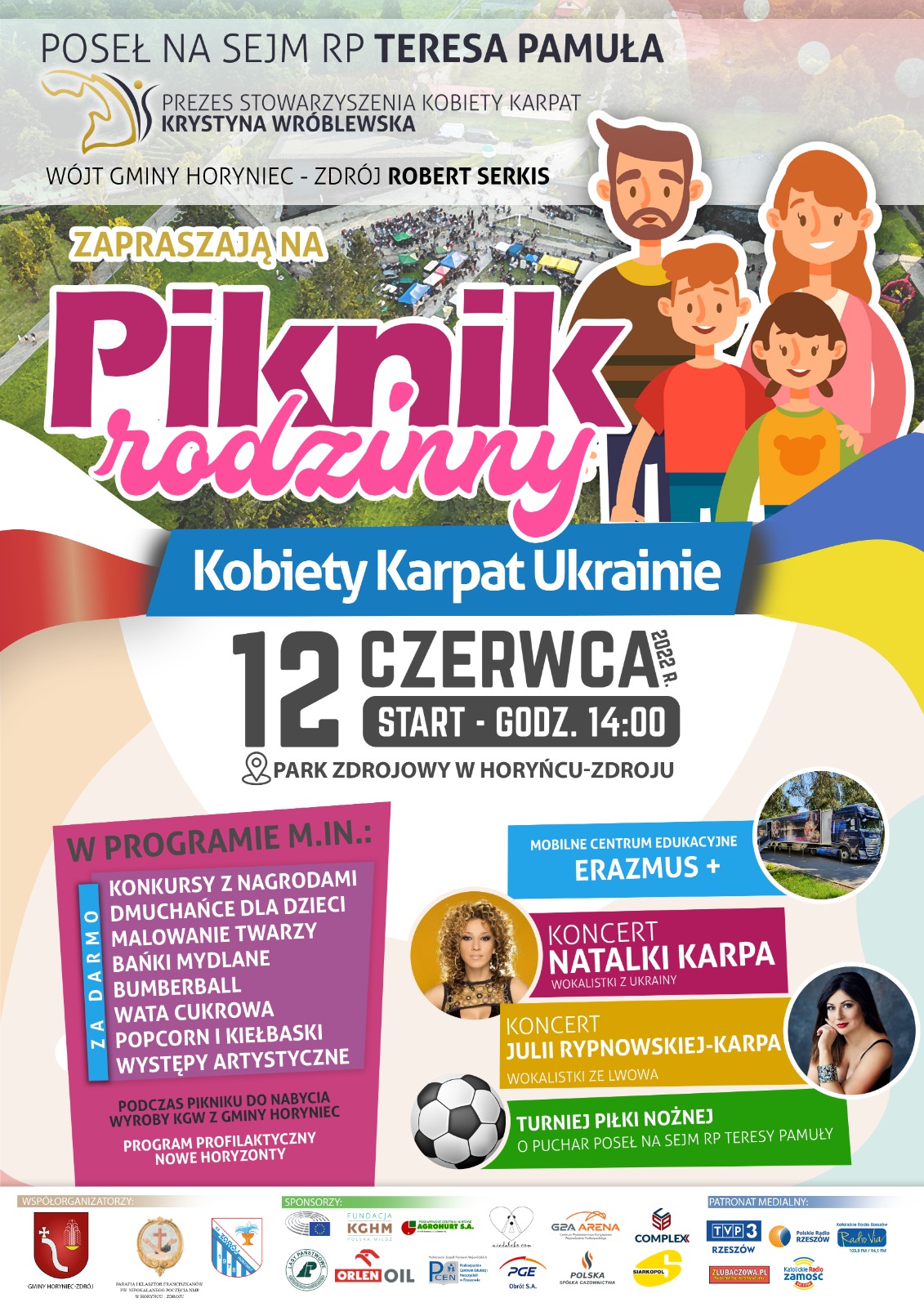 Wydarzenie organizowane przez poseł Teresę Pamułę, Stowarzyszenie Kobiety Karpat oraz wójta Roberta Serkisa rozpocznie się o godz. 14:00. W programie m.in. konkursu z nagrodami, dmuchańce dla dzieci, malowanie twarzy, bańki mydlane, bumberball, wata cukrowa, a także popcorn i kiełbaski. To wszystko będzie za darmo.