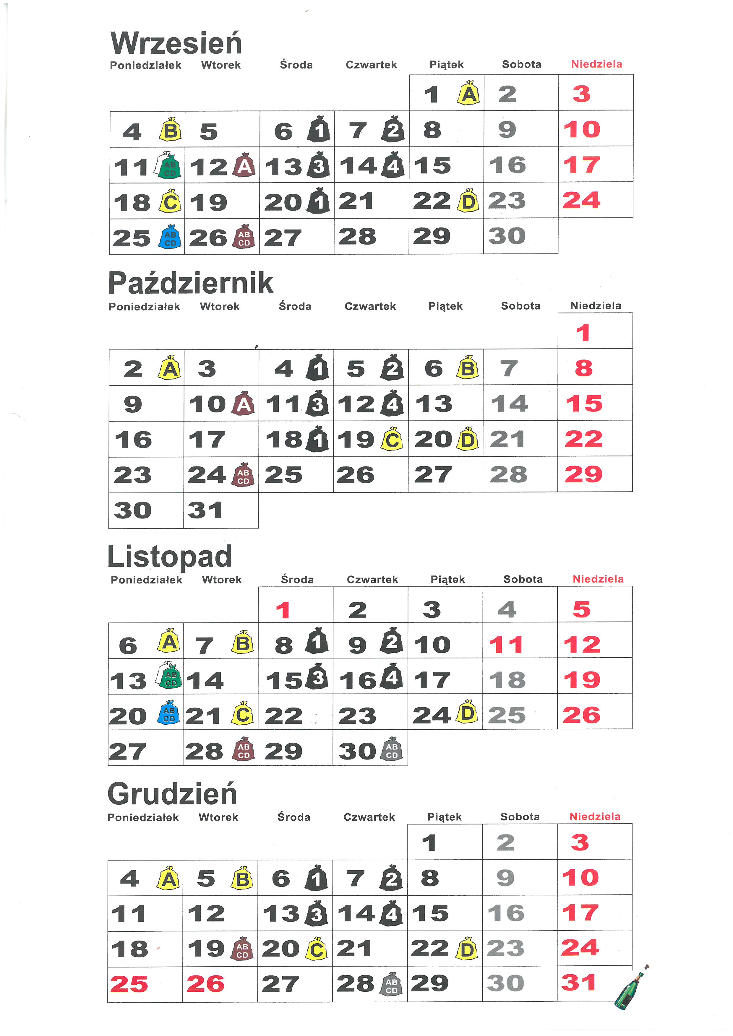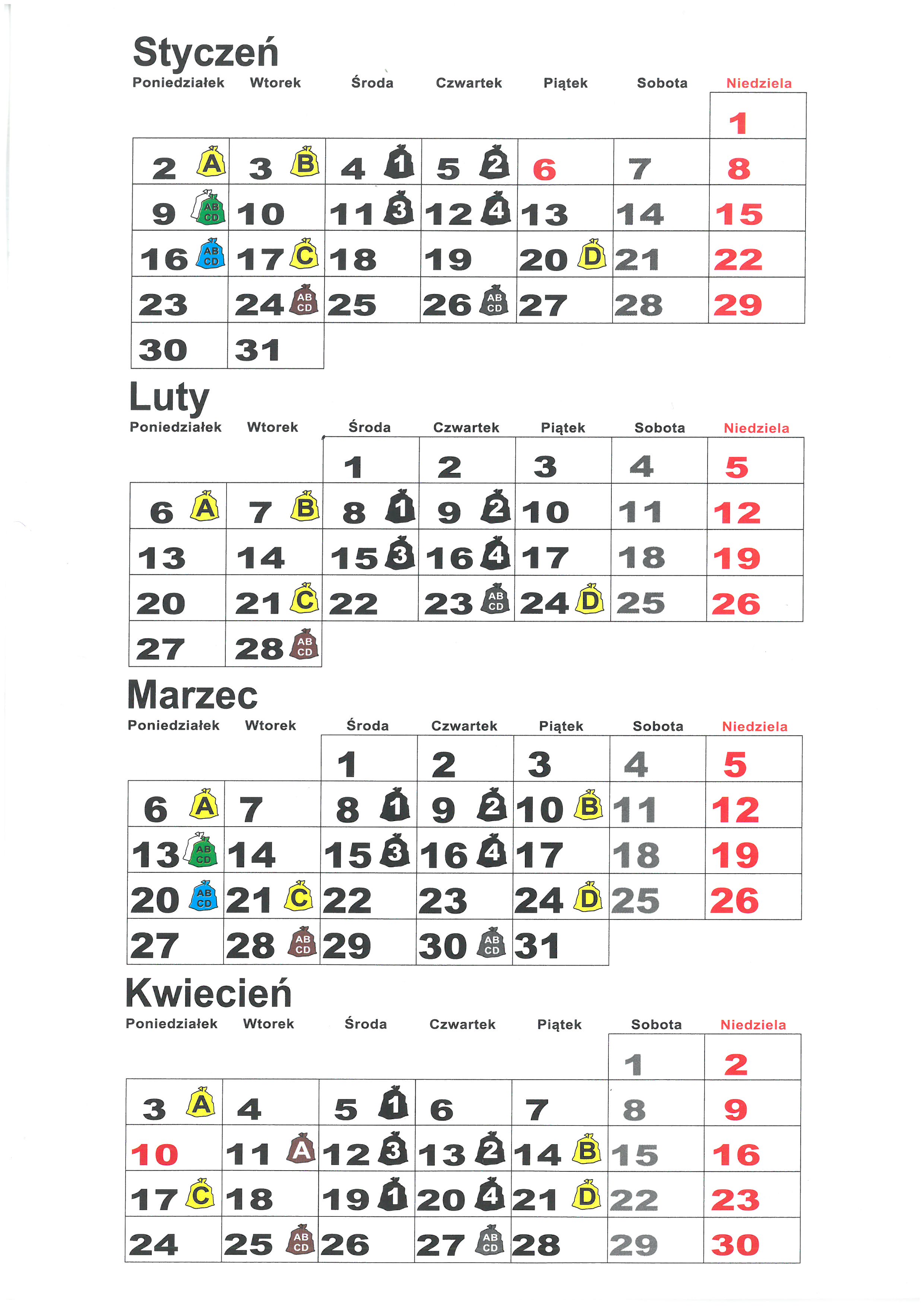 Poniżej znajdziecie harmonogram odbioru odpadów w 2023 roku;
