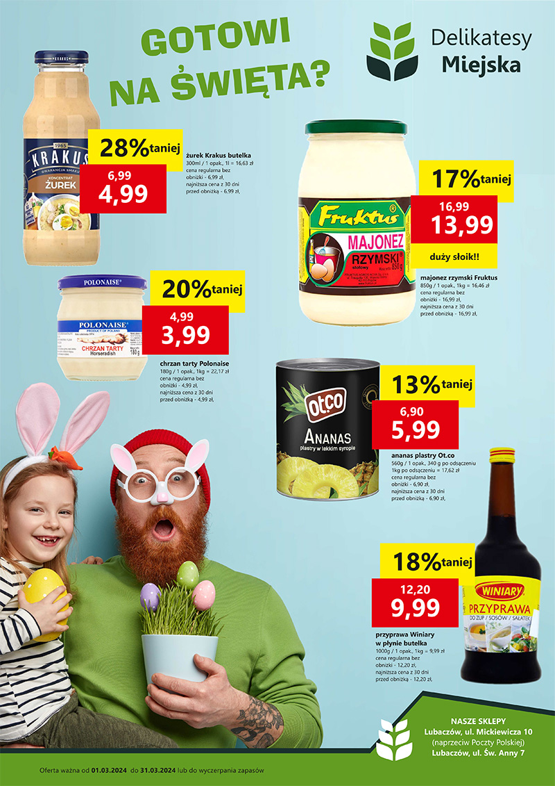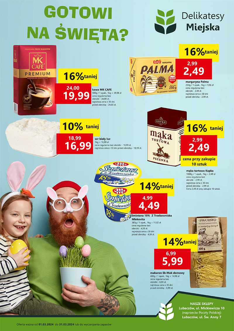 Życząc smacznej kawy, zachęcamy do zakupów u naszych lokalnych sprzedawców! Warto też zapoznać się z najnowszą ofertą promocyjną Delikatesów Miejska, którą zamieszczamy poniżej: