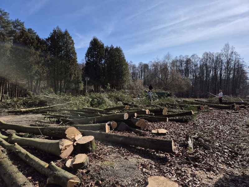 Nadleśnictwo Oleszyce prowadzi prace gospodarcze na parkingu przy uroczysku Horaj. Celem działań jest usunięcie drzew i krzewów, które zagrażały bezpieczeństwu osób korzystających z tego miejsca. Usuwane są przede wszystkim żywotniki oraz drzewa osłabione przez zgniliznę, które mogły stanowić zagrożenie.