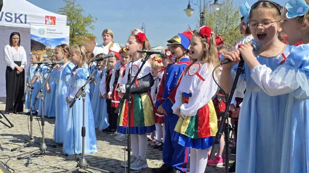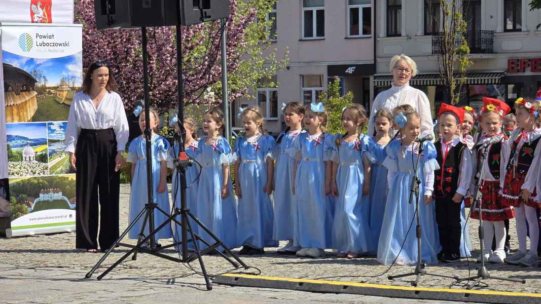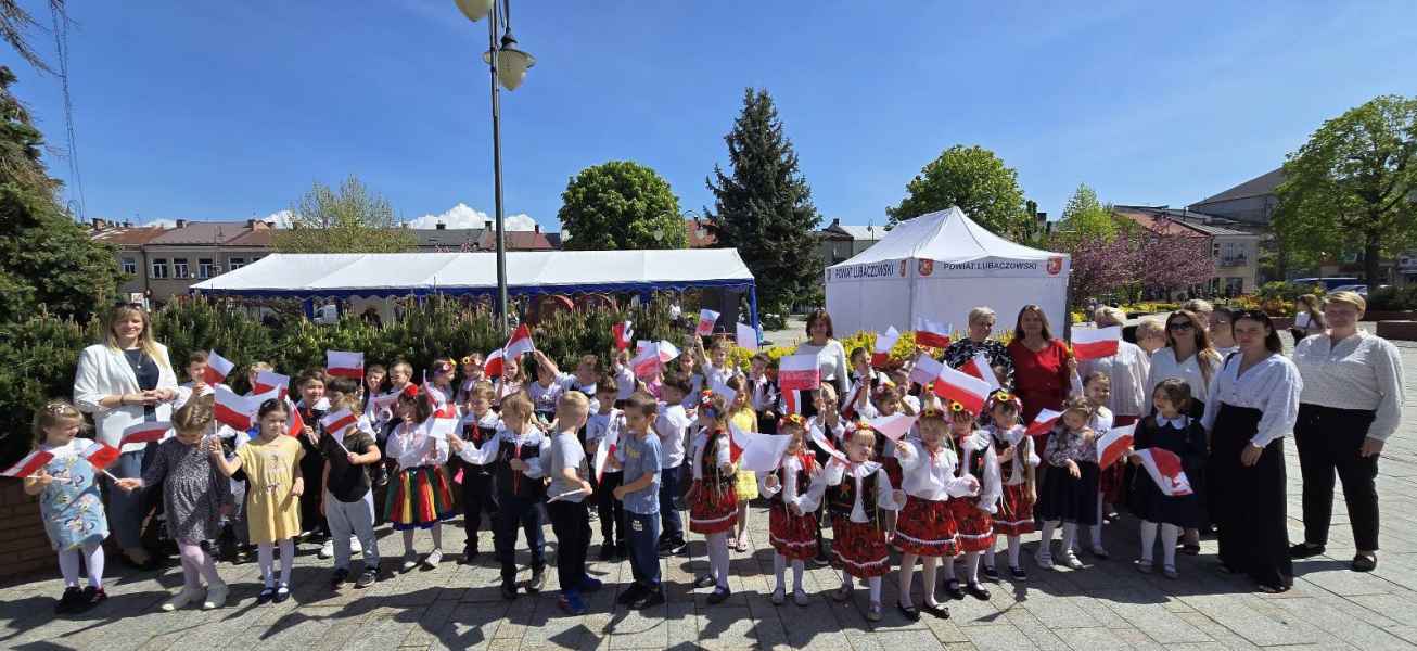 We wtorek, 30 kwietnia, Rynek Miejski w Lubaczowie wypełnił się kolorami narodowej flagi, dziecięcą radością i patriotycznym przesłaniem. Wszystko za sprawą wyjątkowego wydarzenia przygotowanego przez Powiatowe Centrum Kultury w Lubaczowie, Miejskie Przedszkole Nr 1 „Kraina Uśmiechu” oraz Stowarzyszenie Twórców Sztuki Ziemi Lubaczowskiej z okazji Święta Flagi i zbliżającej się 234. rocznicy uchwalenia Konstytucji 3 Maja.