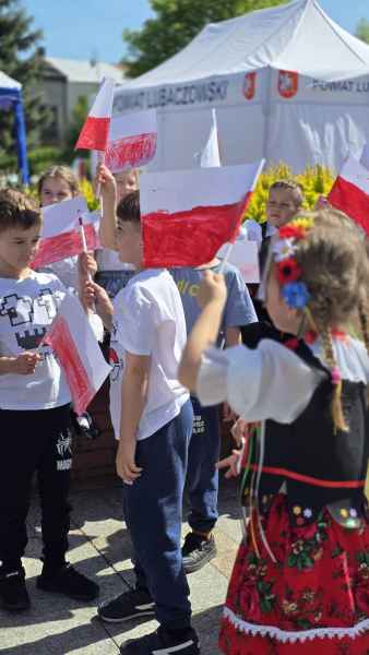 Po części artystycznej dzieci wraz z opiekunami i uczestnikami wydarzenia stworzyły symboliczne biało-czerwone flagi. Całość wydarzenia odbyła się w ciepłej, rodzinnej atmosferze i stała się pięknym początkiem tegorocznej majówki w Lubaczowie.