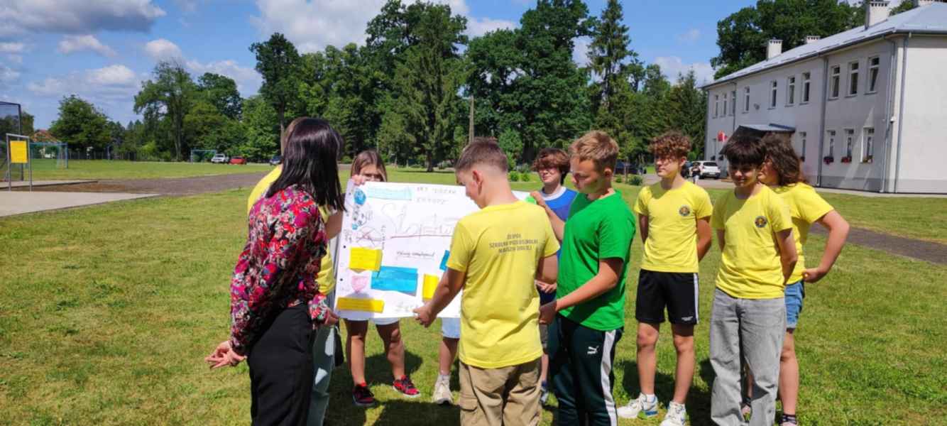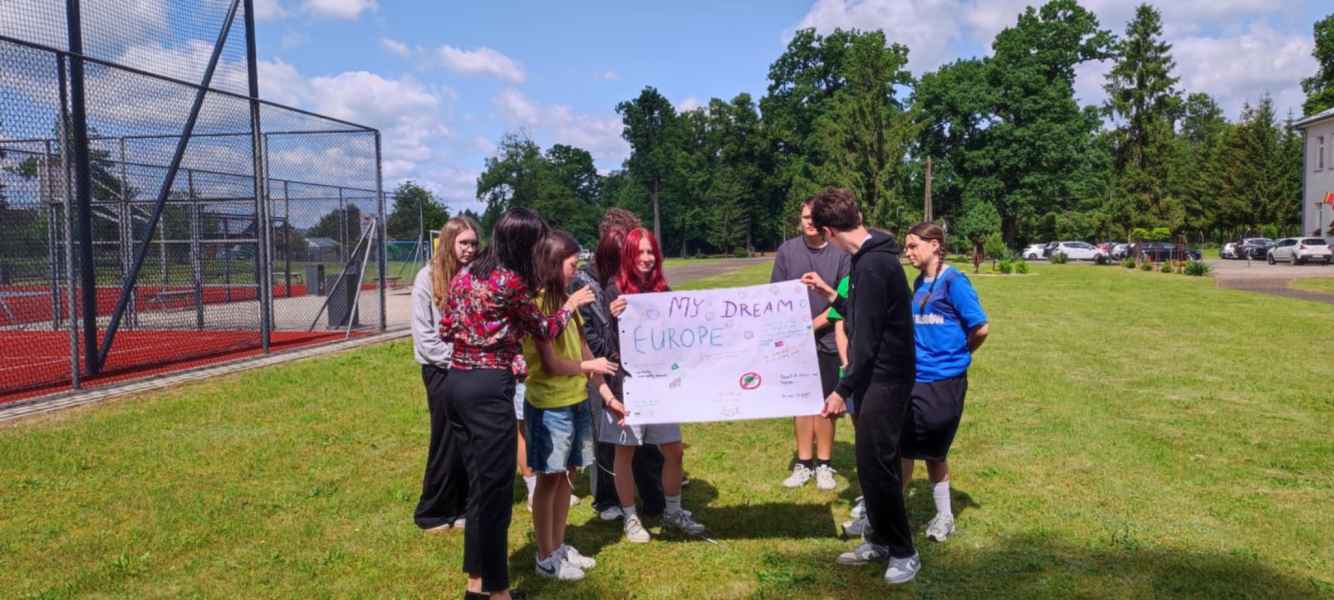 Następnie każda szkoła wytypowała ośmioosobową drużynę, która miała za zadanie stworzyć plakat ilustrujący wizję przyszłości Europy. Uczniowie podeszli do zadania z dużym zaangażowaniem – prezentacje były przemyślane, kreatywne i wzbogacone o słownictwo anglojęzyczne. Po ich wystąpieniach przyszedł czas na rywalizację sportową połączoną z quizami językowymi, która dostarczyła wiele emocji i śmiechu.