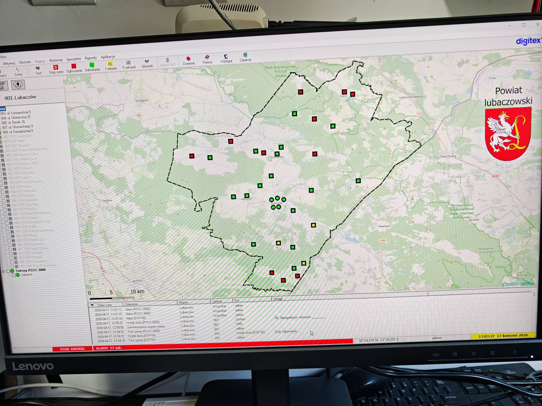 Na terenie powiatu lubaczowskiego zakończyły się prace związane z modernizacją systemu Wczesnego Alarmowania i Ostrzegania o zagrożeniach. W ramach działań przeprowadzono m.in. testy wszystkich 51 syren alarmowych, które zostały uruchomione z poziomu Stanowiska Kierowania Komendy Powiatowej Państwowej Straży Pożarnej w Lubaczowie.