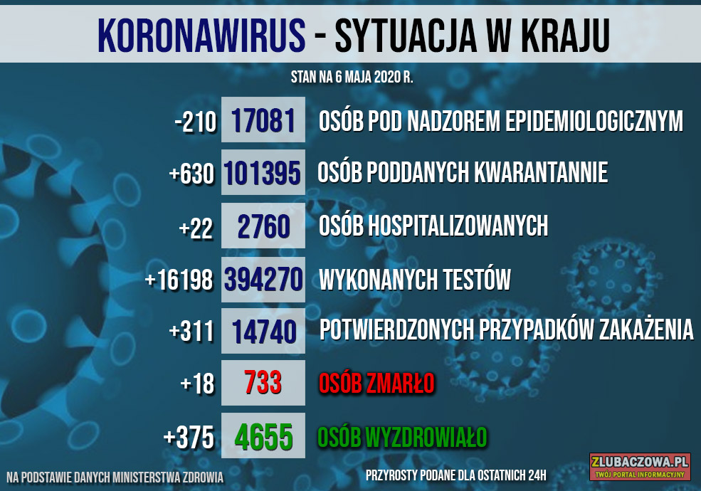 Mamy najnowsze dane dotyczące koronawirusa w naszym powiecie, na Podkarpaciu oraz w kraju. W środę (06.05) w województwie podkarpackim nie odnotowano nowych przypadków. Natomiast zmarła 1 osoba i wyzdrowiało 12.