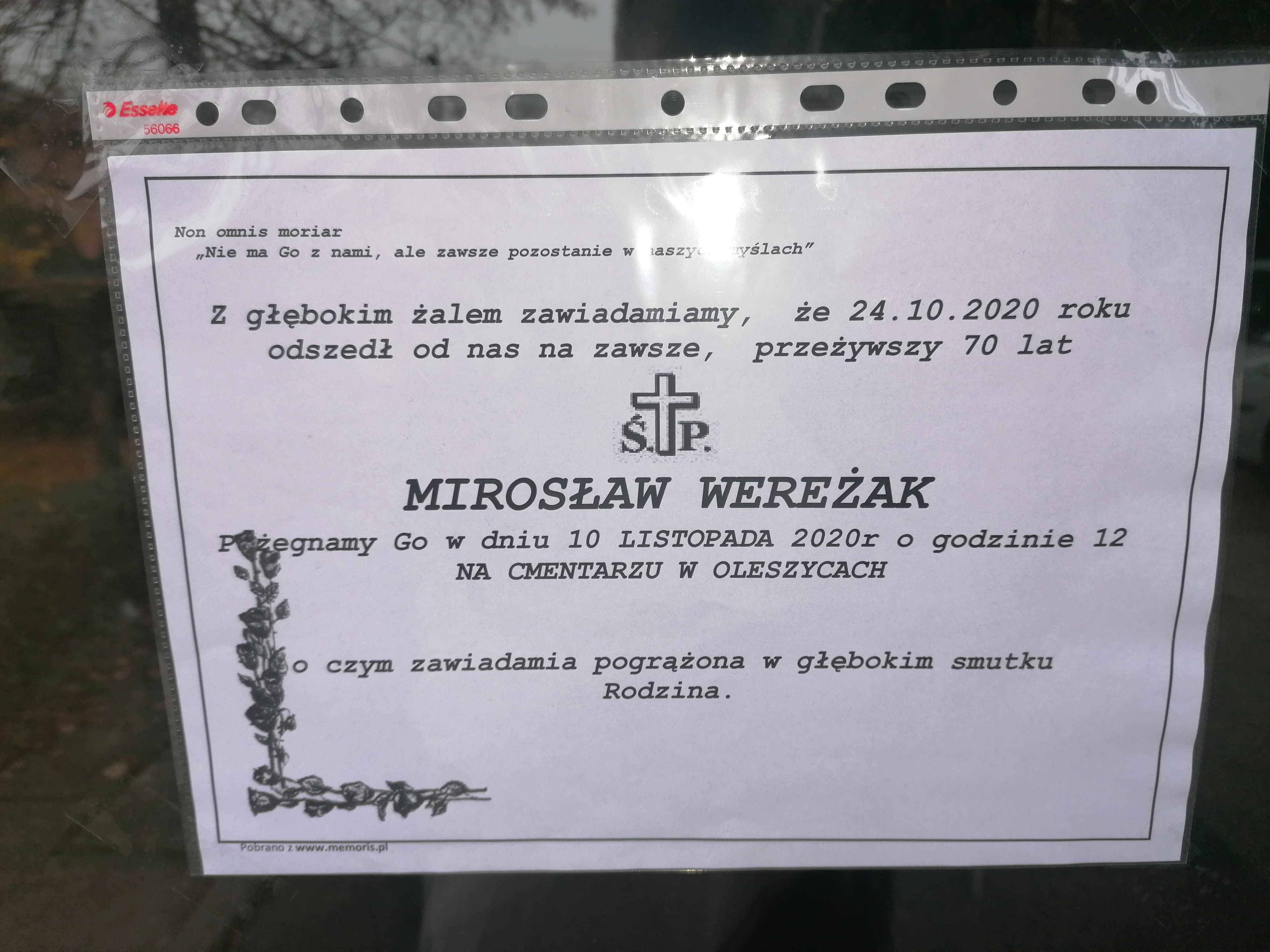 Mirosław Wereżak przez wiele lat uczył języka angielskiego w Zespole Szkół w Oleszycach. Zmarł nagle 24 października w wieku 70 lat.