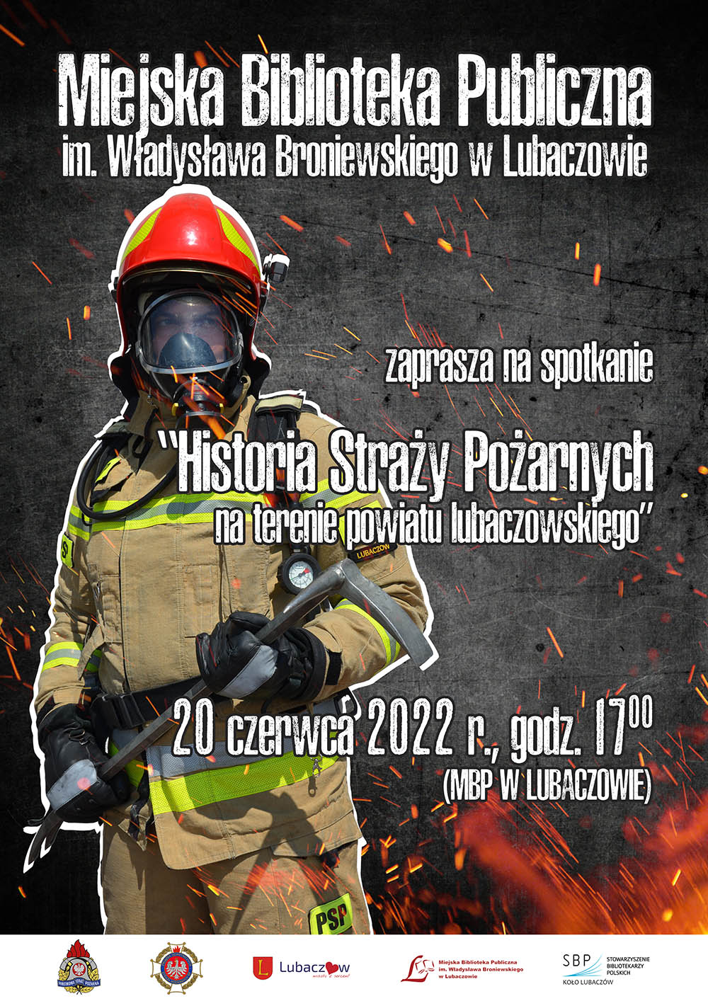 Miejska Biblioteka Publiczna im. Władysława Broniewskiego w Lubaczowie zaprasza na spotkanie „Historia Straży Pożarnych na terenie powiatu lubaczowskiego”, które odbędzie się 20 czerwca 2022 r. o godz. 17:00 w MBP w Lubaczowie.