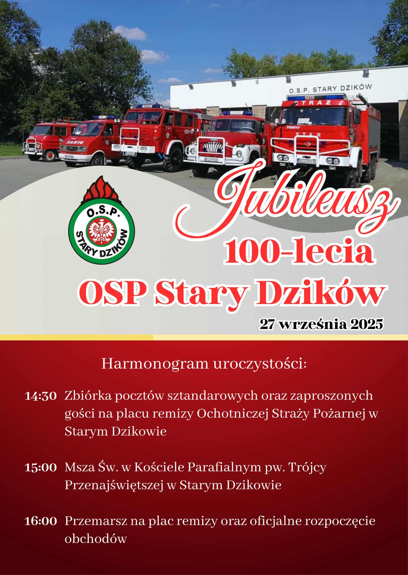 W sobotę, 27 września 2025 roku, społeczność Starego Dzikowa i okolic będzie świętować niezwykłe wydarzenie – jubileusz 100-lecia miejscowej Ochotniczej Straży Pożarnej.