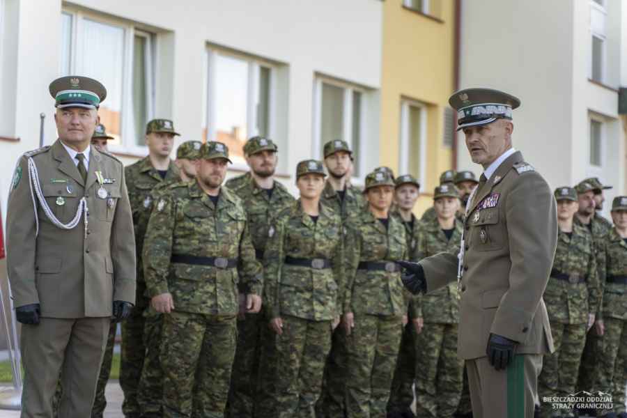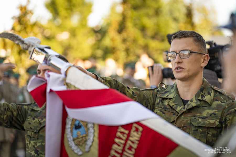Rotę ślubowania od młodych adeptów przyjął gen. bryg. SG Tomasz Zybiński, Komendant BiOSG. Od tej chwili stali się oni pełnoprawnymi funkcjonariuszami Straży Granicznej.