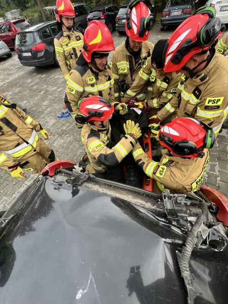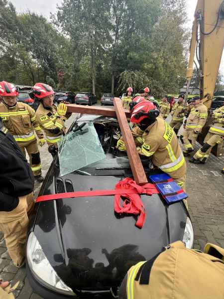 Celem zajęć było poszerzenie wiedzy oraz rozwijanie praktycznych umiejętności związanych z udzielaniem pomocy osobom uwięzionym w pojazdach po zdarzeniach drogowych. Ćwiczenia rozpoczęły się od omówienia zasad bezpieczeństwa i higieny służby, a następnie ratownicy przystąpili do praktyki.