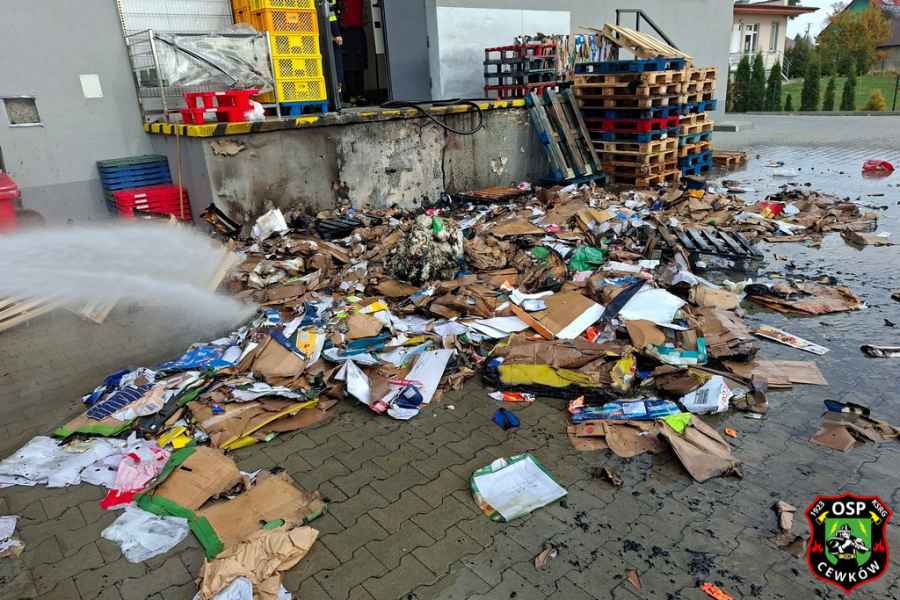 W czwartek 23 października o godzinie 11:37 służby ratunkowe zostały poinformowane o pożarze makulatury przy jednym ze sklepów w Starym Dzikowie. Ogień objął składowany na zewnątrz materiał papierowy.