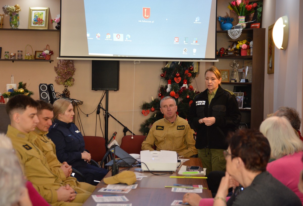 W Centrum Aktywności Seniora w Lubaczowie odbyło się spotkanie profilaktyczne poświęcone bezpieczeństwu osób starszych. Inicjatywa zgromadziła przedstawicieli trzech służb mundurowych, którzy w przystępny sposób przybliżyli seniorom zagrożenia mogące pojawić się w codziennym życiu, zasady bezpieczeństwa pożarowego oraz specyfikę służby na granicy.