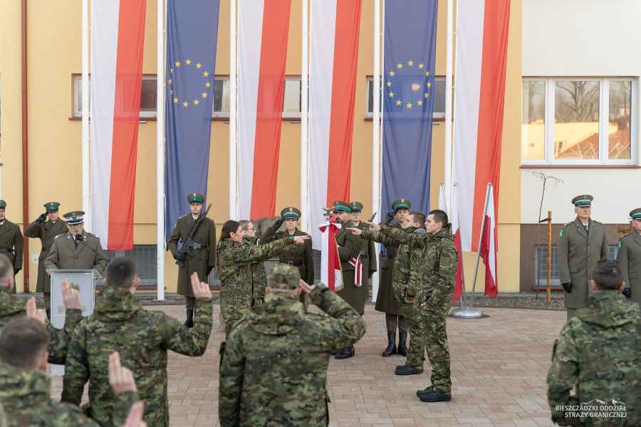 Centralnym punktem apelu było ślubowanie 49 nowych funkcjonariuszy Straży Granicznej. Składając rotę na sztandar oddziału, oficjalnie rozpoczęli służbę. Wśród nowo przyjętych jest 26 mężczyzn i 23 kobiety, wszyscy pochodzący z województwa podkarpackiego. Większość posiada wykształcenie średnie. W najbliższych dniach funkcjonariusze wyjadą do Ośrodka Szkoleń Specjalistycznych Straży Granicznej w Lubaniu, gdzie przejdą szkolenie przygotowawcze. Po jego ukończeniu i zdaniu egzaminów trafią do służby w podkarpackich placówkach SG.