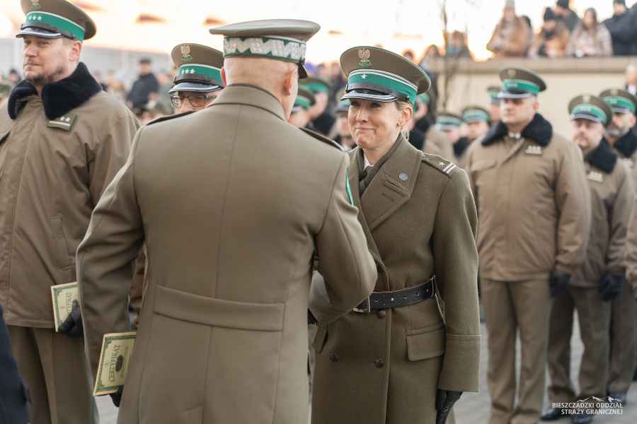 Gen. bryg. SG Tomasz Zybiński pogratulował nowym funkcjonariuszom pomyślnego zakończenia procesu rekrutacji. Podkreślił, że służba w Straży Granicznej wiąże się z dużą odpowiedzialnością, dyscypliną oraz gotowością do działania w różnych, często wymagających warunkach. Szczególne słowa skierował również do rodzin i bliskich nowo wcielonych funkcjonariuszy, zwracając uwagę na ich rolę w codziennym wsparciu i zrozumieniu specyfiki służby, opartej na dyspozycyjności i stałym zaangażowaniu w zapewnianie bezpieczeństwa Polski oraz zewnętrznej granicy Unii Europejskiej.