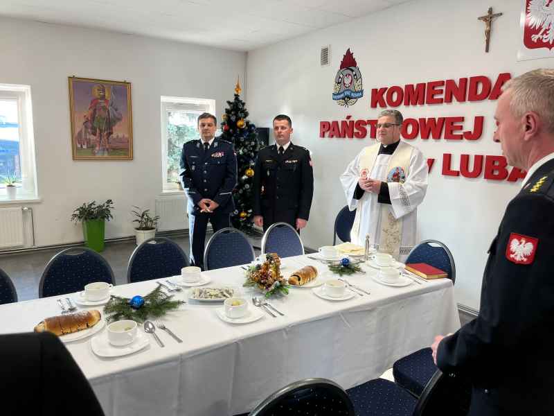 19 grudnia w Komendzie Powiatowej Państwowej Straży Pożarnej w Lubaczowie odbyło się spotkanie opłatkowe funkcjonariuszy oraz pracowników cywilnych. Była to okazja do wspólnego, przedświątecznego spotkania w gronie osób na co dzień zaangażowanych w służbę na rzecz bezpieczeństwa mieszkańców powiatu lubaczowskiego.