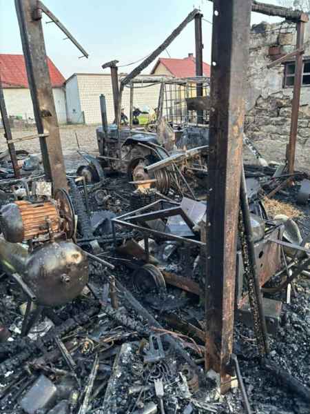 W wyniku pożaru spaleniu uległy trzy samochody osobowe oraz ciągnik rolniczy. Ogień zniszczył także znaczną ilość wyposażenia warsztatowego, w tym m.in. spawarkę MIG/MAG, grubościówkę i heblarkę. Spłonął również sprzęt rolniczy oraz przyczepka samochodowa.