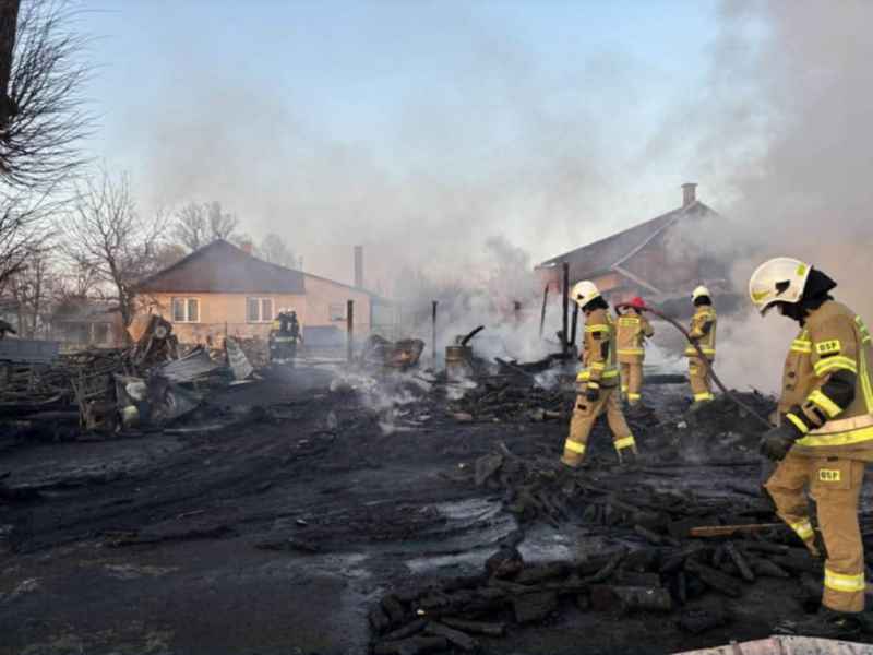 W środę po południu w Werchracie doszło do groźnego pożaru zabudowań gospodarczych. Ogień w krótkim czasie objął garaż i cały kompleks budynków, niszcząc pojazdy, sprzęt warsztatowy i rolniczy. Płomienie przeniosły się również na pobliskie nieużytki z suchą trawą, zagrażając pobliskim budynkom mieszkalnym.