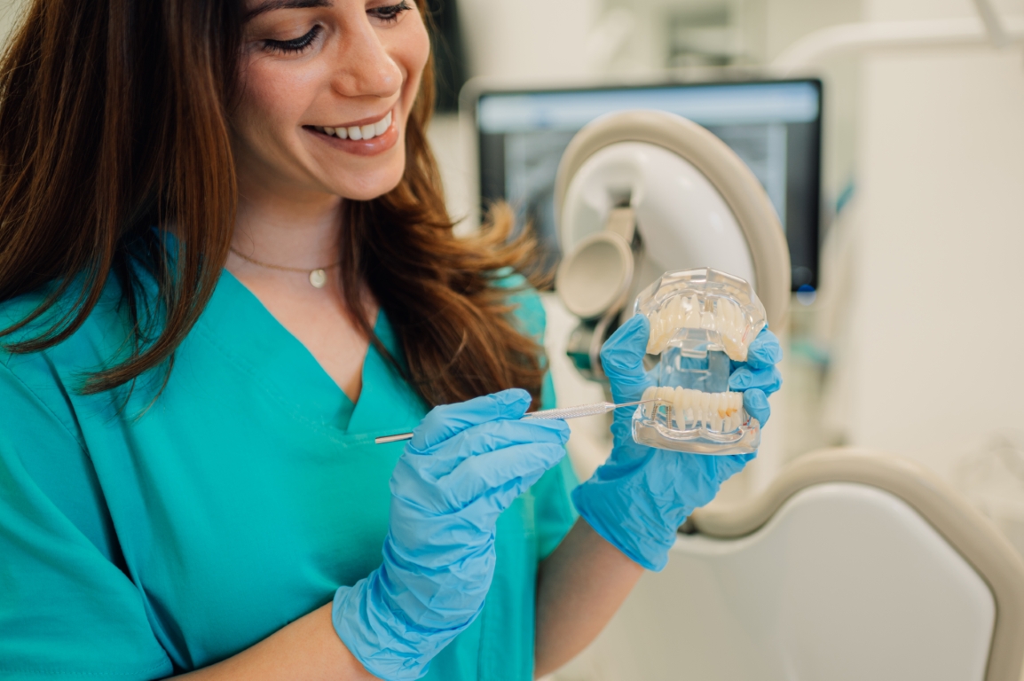 Asystentka stomatologiczna przygotowuje stanowisko zgodnie z zasadami ergonomii, kompletuje materiały, prowadzi dokumentację medyczną na zlecenie lekarza i towarzyszy mu podczas zabiegów. Zajmuje się też organizacją pracy gabinetu: układa terminarz wizyt, kontaktuje się z pacjentami, współpracuje z laboratoriami i poradniami radiologicznymi. Często to właśnie ona jako pierwsza wita pacjenta, a jej sposób bycia, spokój i uważna komunikacja wpływają na atmosferę w trakcie całej wizyty.