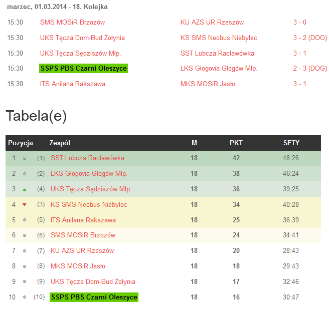Nie takie cele postawili sobie siatkarze z Oleszyc. Po wczorajszej przegranej z Głogowem Małopolskim Czarni przekreślili swoje szanse gry w III lidze w kolejnym sezonie plasując się na 10, ostatnim miejscu co jest jednoznaczne ze spadkiem do niższej ligi.