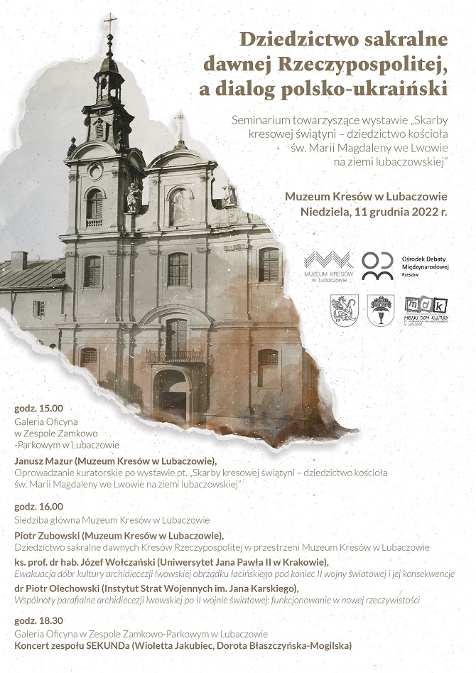 Seminarium towarzyszyć będzie wystawie „Skarby kresowej świątyni – dziedzictwo kościoła św. Marii Magdaleny we Lwowie na ziemi lubaczowskiej”, prezentowanej w Galerii Oficyna w Zespole Zamkowo-Parkowym, i odbędzie się dzięki współpracy Muzeum z Gminą Lubaczów, Regionalnym Ośrodkiem Debaty Międzynarodowej w Rzeszowie oraz Miejskim Domem Kultury w Lubaczowie.