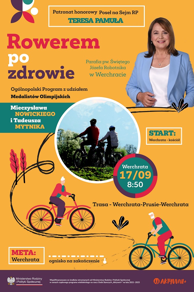 „Rowerem po zdrowie” to ogólnopolski program do udziału w którym zaprasza główny organizator, którym jest Ministerstwo Rodziny i Polityki Społecznej. Rajd rowerowy z udziałem medalistów olimpijskich Mieczysława Nowickiego i Tadeusza Mytnika odbędzie się na trasie Werchrata – Prusie w niedzielę 17 września. Start spod kościoła w Werchracie o godzinie 8:50.