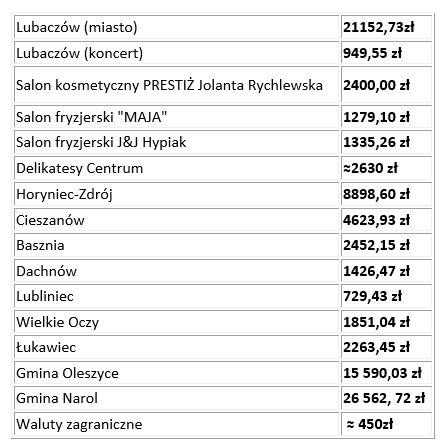 Podczas 23 finału Wielkiej Orkiestry Świątecznej Pomocy w powiecie lubaczowskim zebrano ponad 94 tysiące złotych. Ciągle jednak trwają charytatywne aukcje, więc kwota ta może się powiększyć.