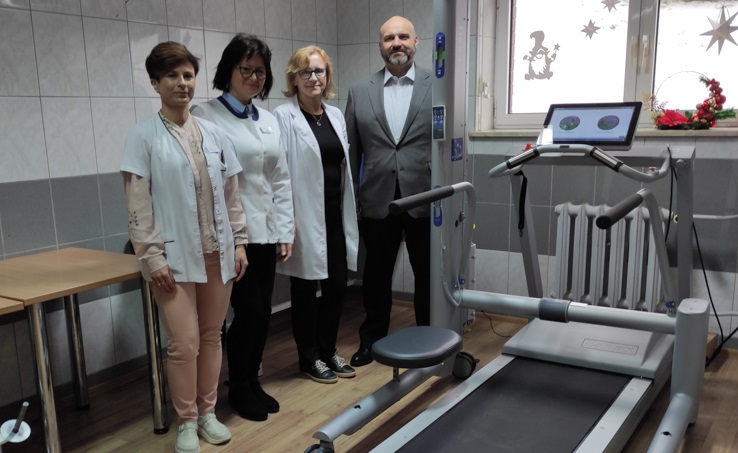 Szpital pozyskał również bieżnię zaprojektowaną specjalnie do rehabilitacji chodu u pacjentów z zaburzeniami neurologicznymi oraz ortopedycznymi w różnym wieku. To zautomatyzowane urządzenie współpracuje z pacjentem za pomocą dźwięków i obrazów, umożliwia trening dróg nerwowych i przyśpiesza powrót do normalnej zdolności chodzenia. Bieżnia analizuje i zapamiętuje postępy w rehabilitacji konkretnego pacjenta.