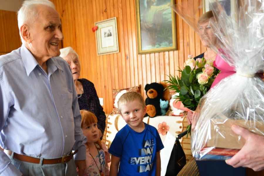 Ten wyjątkowy dzień nabrał jeszcze większego znaczenia, ponieważ zbiegł się z 94. urodzinami Józefa Mikutry. Jubilat świętował je w gronie najbliższych – córki Barbary z mężem Leszkiem oraz prawnuków, Michałka i Marysi. To właśnie najmłodsi członkowie rodziny nadawali uroczystości wyjątkowy charakter, nie odstępując pradziadków ani na krok.