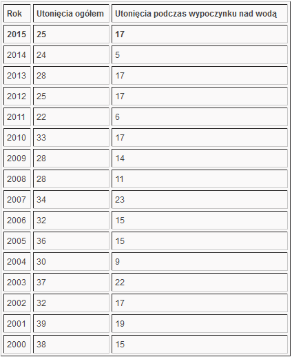 Statystyki utonięć na Podkarpaciu. (za KWP Rzeszów)