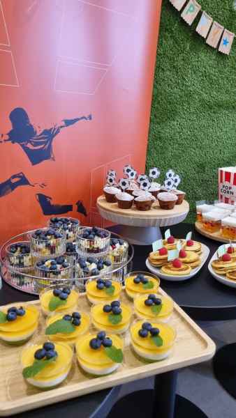 - piłkarska dekoracja i strefa relaksu,