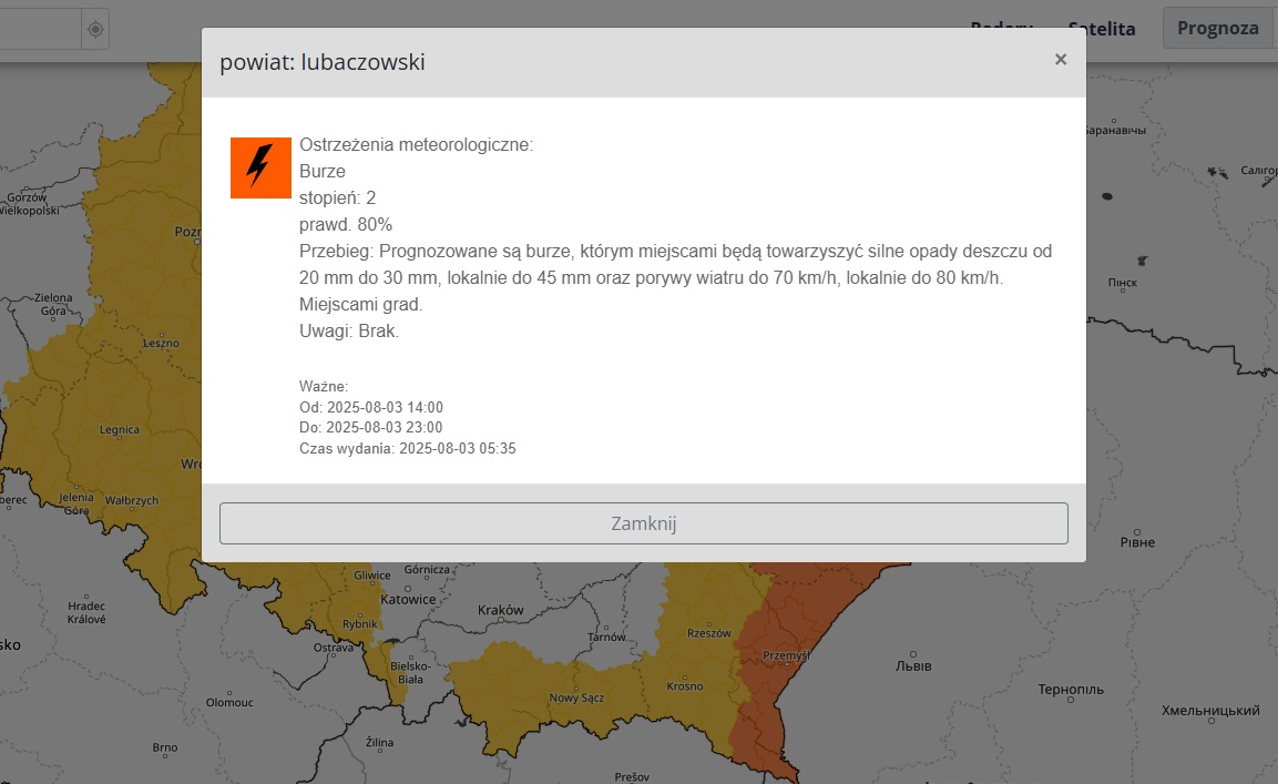 W niedzielę, 3 sierpnia, mieszkańcy powiatu lubaczowskiego muszą przygotować się na niebezpieczne zjawiska pogodowe. Instytut Meteorologii i Gospodarki Wodnej wydał ostrzeżenie drugiego stopnia przed burzami, które obowiązuje od godziny 14:00 do 23:00.
